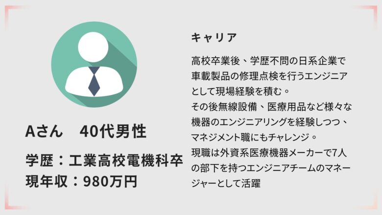 Aさん:工業高校卒→エンジニアチームのマネージャー