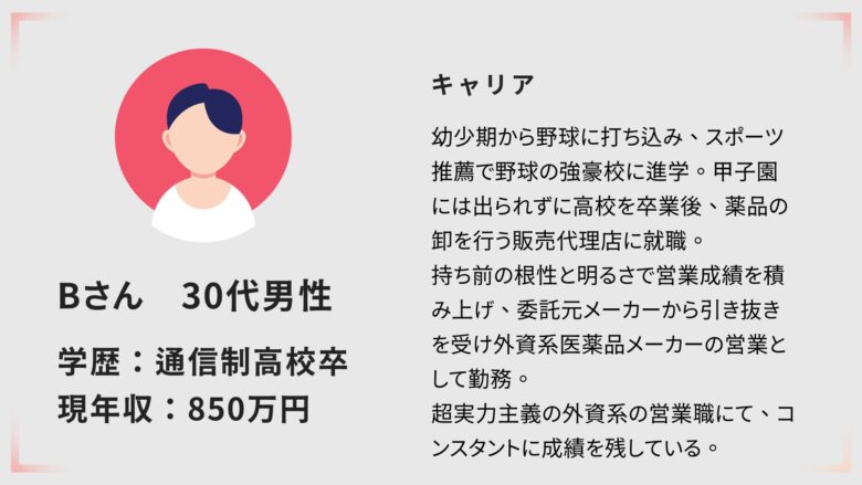 Bさんは甲子園を目指していた元高校球児。学歴ではなくスポーツ強豪校という理由で進学先を選んできました。
