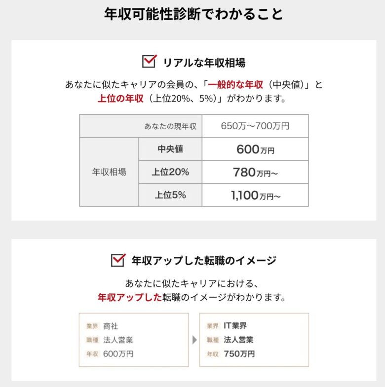 ※年収可能性診断は「登録→プロフィール入力」まで進めると確認できます。