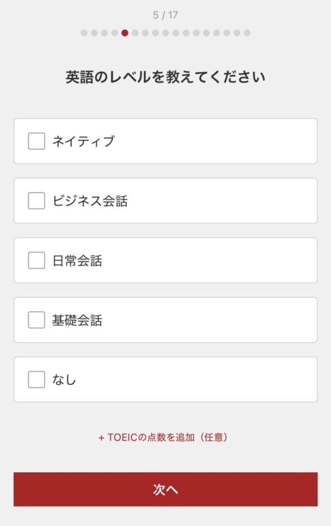 (TOEICを受けたことがある人はここでスコアも入力できます)